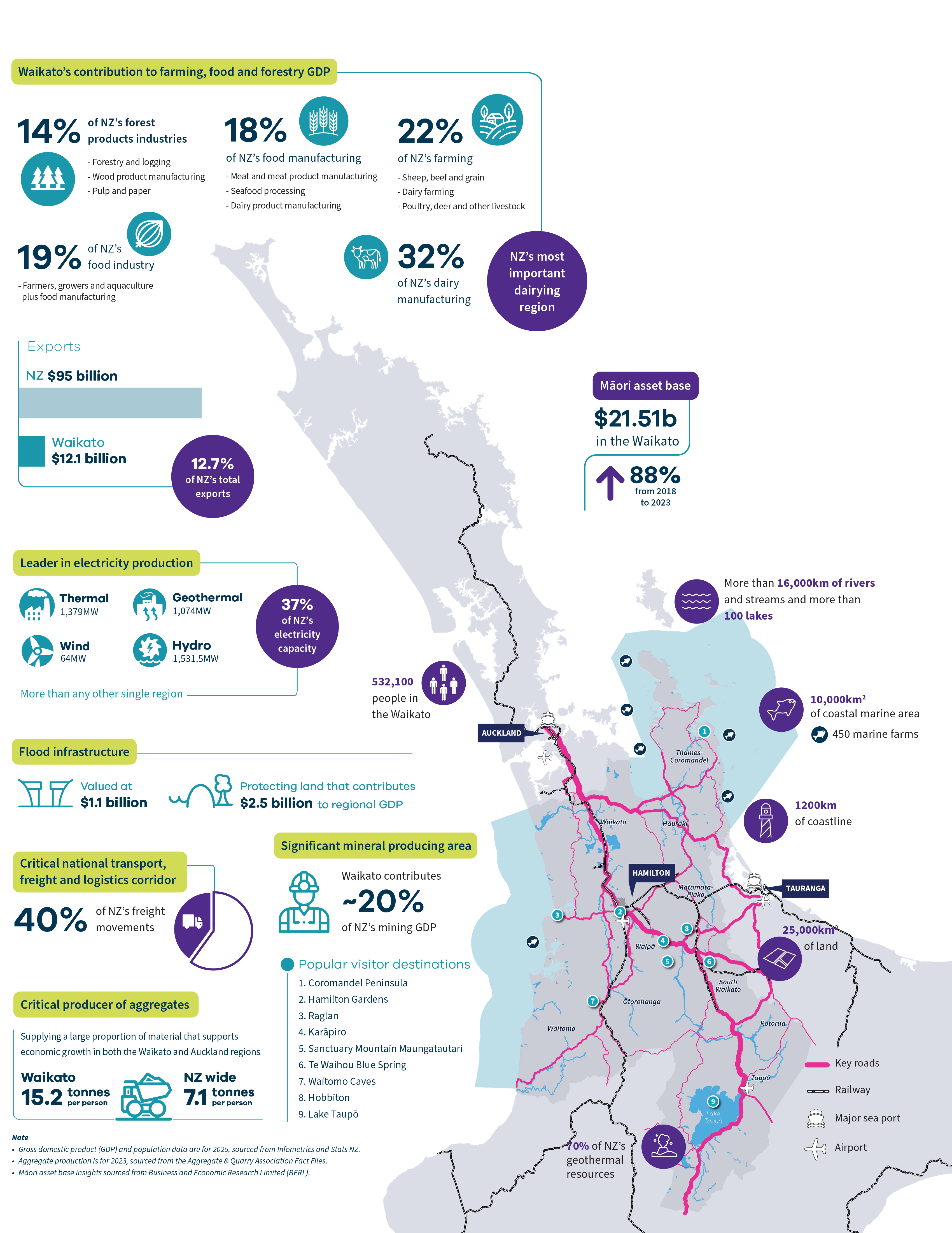 The region’s strengths are further supported by a growing Māori economy and the longstanding cultural regional leadership of the Kīngitanga.