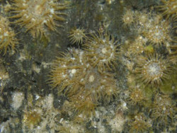 The main group of anthozoans found in Waikato estuaries are the tube-dwelling anemones or cerianthids. These are physically very similar to other sea anemones but, as their name suggests, tube-dwelling anemones have a fibrous tube like structure below their tentacular crown. The organisms are solitary and can withdraw inside their tube for protection. Sea anemones are carnivores that eat fish, mussels, zooplankton (like copepods, other small crustaceans, tiny marine larvae), and worms. They have few natural predators. Cerianthids live exclusively in soft sediment systems and are often buried, making them difficult to see. They are often found attached to the shell of common bivalves, particularly cockles. Information on the most common anthozoan species we monitor in is given below.