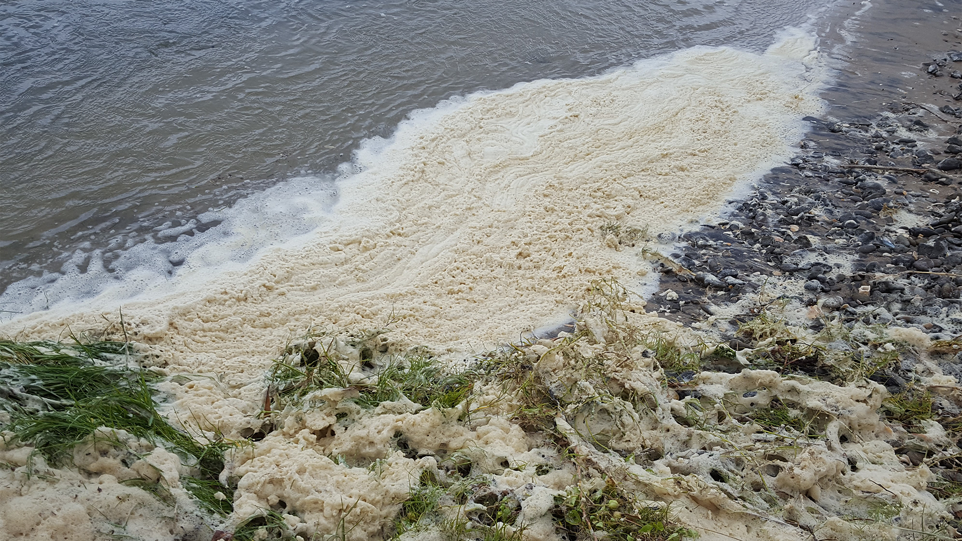 In contrast, foam from human activities tends to stay white, smells soapy or like detergent, and is usually found in small areas near the pollution source rather than during high water flow or windy conditions.