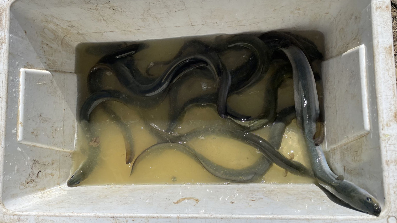 The area between the Aquadam and the control gate was dewatered, with the remaining pool then hand netted for fish – 936 native fish were successfully relocated during hand netting. Altogether, 2489 pest fish were euthanised.
