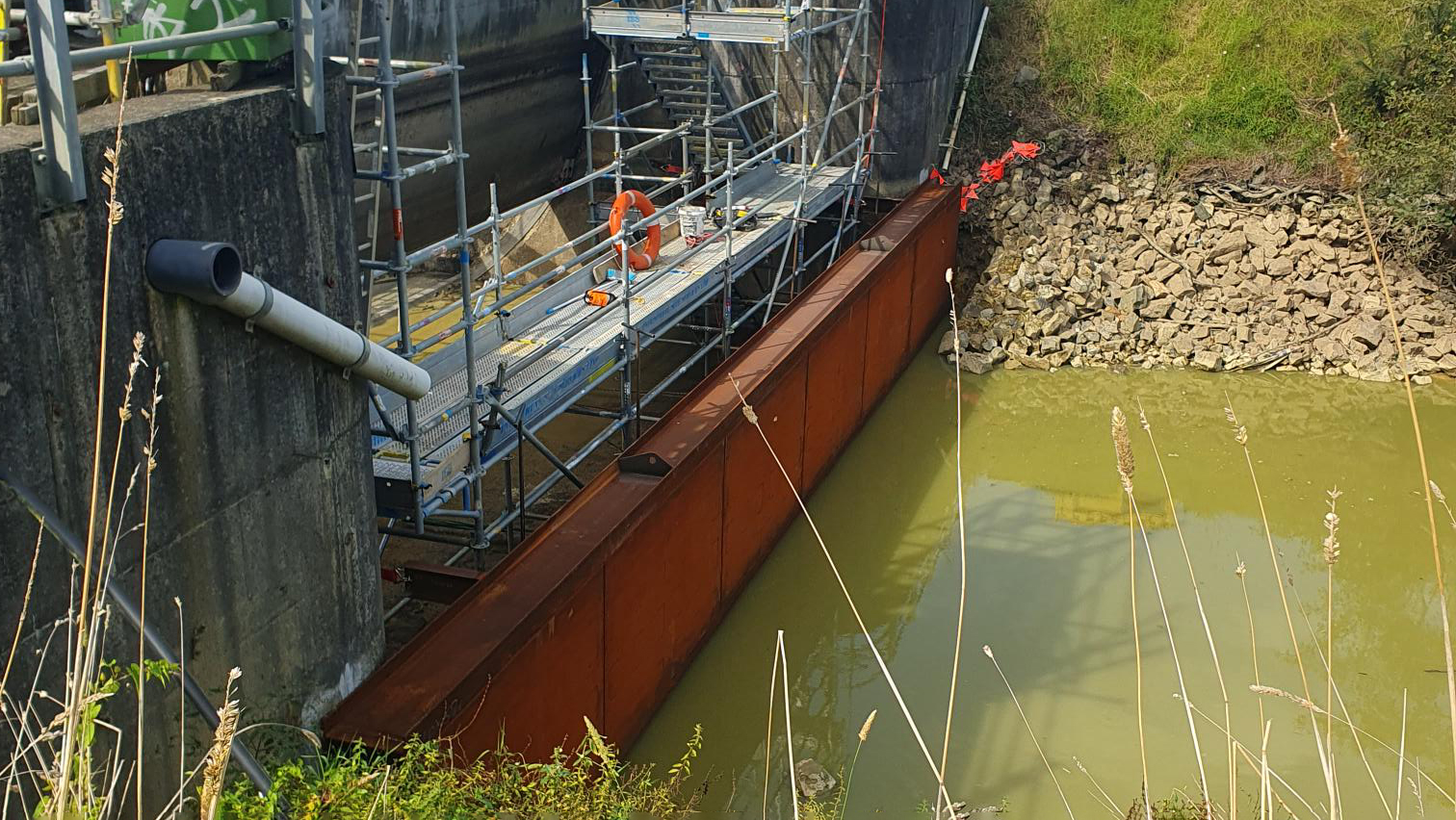 The control gate was installed in 1965 and had a leaking seal that needed to be fixed. The 14-tonne gate is made of steel and measures 12 metres in length by 4 metres in height.